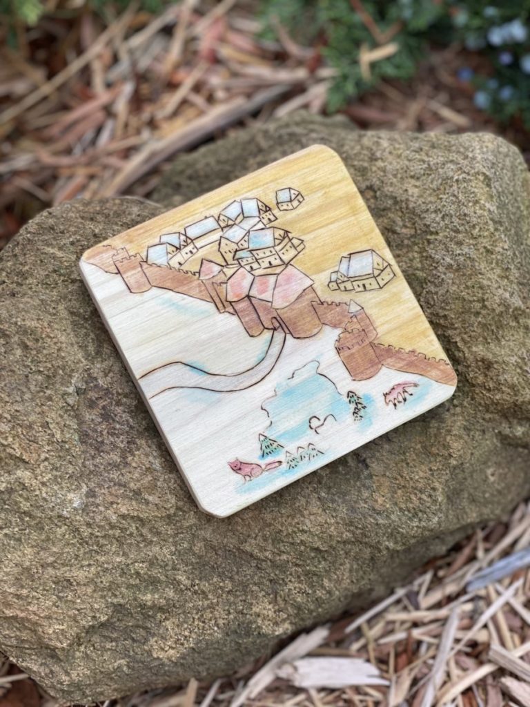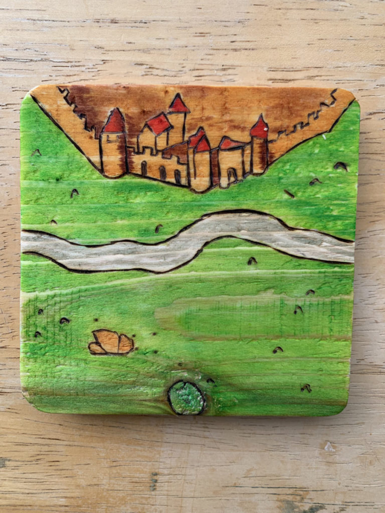 Imagine your next board game night you serve your guests their drinks on the beautiful, hand-burned Carcassonne coasters.