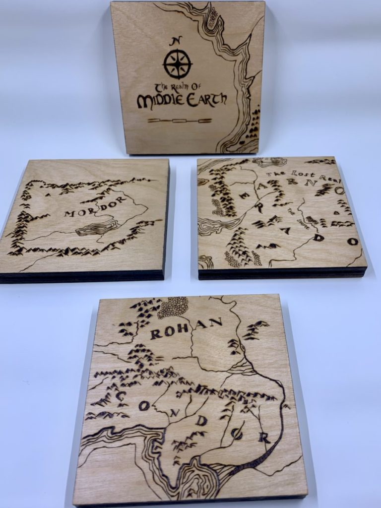 …and with these Lord of the Rings coasters, which are hand-burned, you will never feel lost.