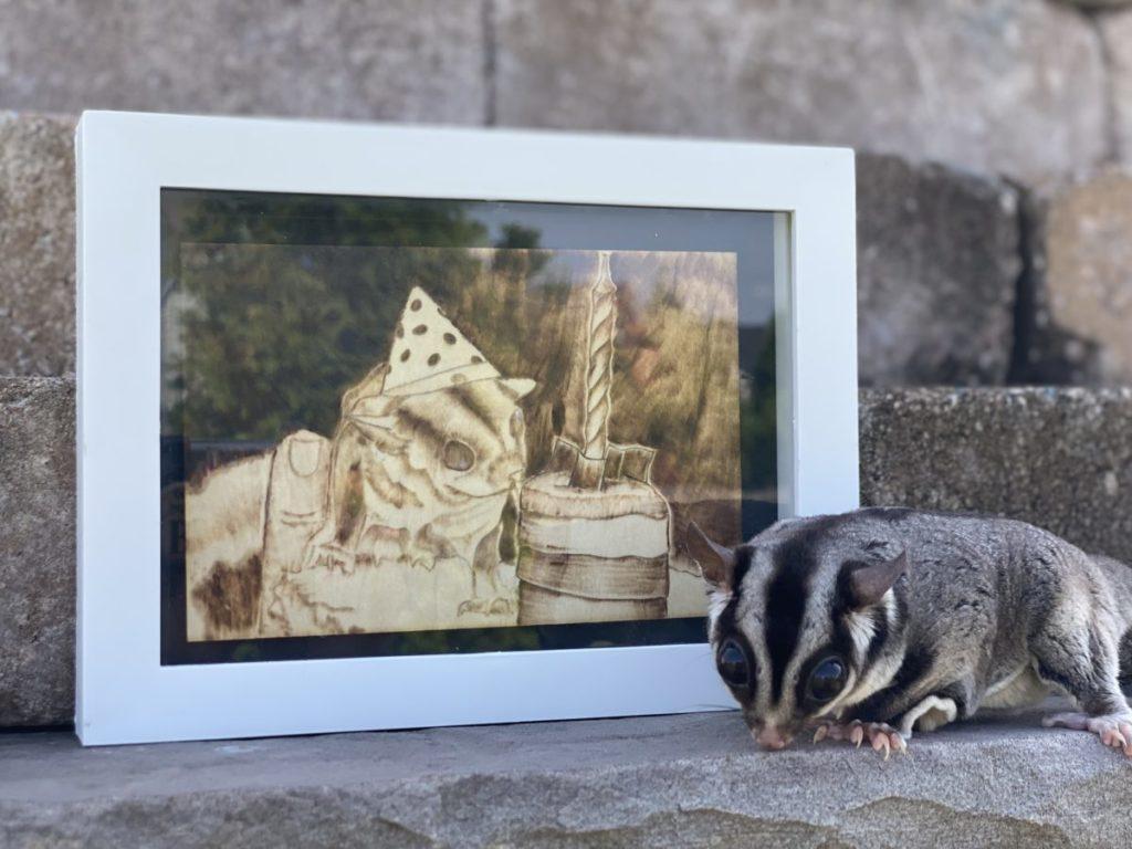As a pyrographer pet portraits were never my thing. Whenever we did a market I was very apt to tell patrons that I can burn anything except photo-realistic portraits. Today I eat my own words. When a friend lost their beloved cat I was compelled to try my hand at doing my first pet portrait as an homage to the sweet boy. In addition to Max’s portrait, I also decided to do a piece for Wood Burn Corner’s Spring Burnt Week featuring another furry critter: a Sugar Glider.