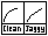 Creating believable curves If you don’t space your pixels out perfectly you end up with jagged edges, or jaggies, that can absolutely ruin a picture. Getting the right ratio of pixels in your curves is key. A lot of programs designed for sprites do this for you using a feature called “Pixel Perfect”