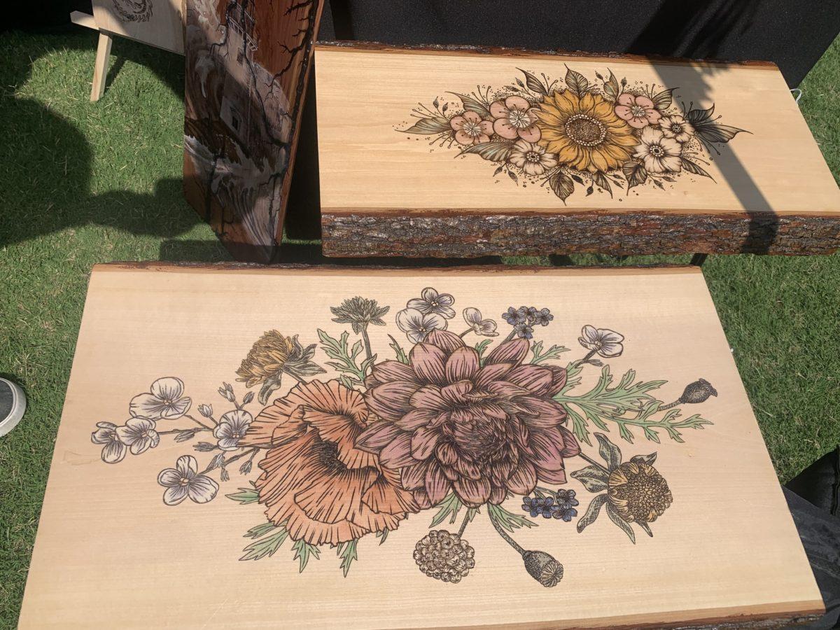 I find from talking to customers and people I meet at markets that they like detail and crispness in their pieces. Ensuring consistency of the lines and consistency of the colors goes a long way. To get consistent lines it helps to put effort and time in upfront to the patterns that I use. A good, clean pattern is much easier to burn off. To maintain consistency of colors I try to use ones made from the same artist. I’ll use a single supplier’s color for an individual piece, or series to get uniformity. Artists like Emily Grace (@emily_grace_palettes) have the same attention to detail in the palettes she sells so I know, by using her paints, my work will as well.