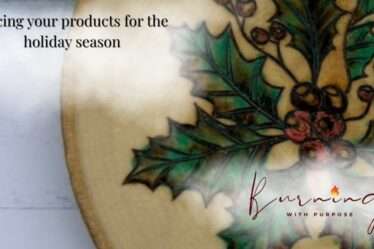 Doing pieces in batches can help to manage your time. If you try to do one at a time that means you have to create the pattern, heat transfer, burn, color, and seal each individually. If you do them in batches it saves time and creates a flow. Work in blocks of time of at least an hour. Give yourself time to get comfortable, set everything up, and heat up your tools. Constantly task switching is going to negatively impact the consistency of your product. If I have less than an hour I may just create patterns or do some administrative work, reserving the creative work for when I have adequate time.