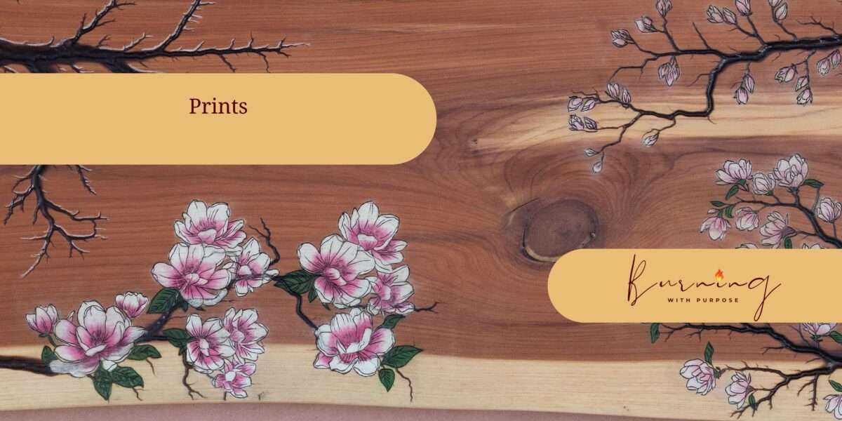 We have considered this before: how does wood translate to prints. The real beauty of the wood art is not just the etchings themselves but also the canvas they are drawn on. This can be the grain of the wood, the shape, the live edge, or the beautiful cracks in the wood that we get when we collaborate with Jessica Crowley. The question we always had was “how do we capture that in a print?”.